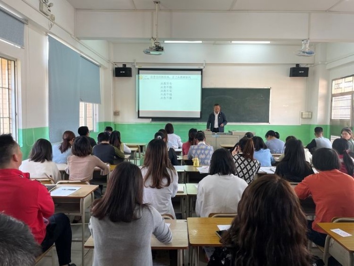為貫徹學(xué)習(xí)黨的十九屆六中全會(huì)精神,引導(dǎo)教師立足崗位,堅(jiān)定教育信念,順應(yīng)時(shí)代潮流,打造一支高效的新時(shí)代教師隊(duì)伍。11月16日,大涌鎮(zhèn)旗北小學(xué)舉行了“轉(zhuǎn)作風(fēng),再出發(fā),開新局,爭(zhēng)當(dāng)新時(shí)代‘四有’好教師”師德師風(fēng)專題學(xué)習(xí)會(huì)。旗北小學(xué)周景照校長和旗北小學(xué)全體教師一起學(xué)習(xí)了《新時(shí)代教師職業(yè)行為十項(xiàng)準(zhǔn)則》,要求教師們對(duì)照“從教不專,從教不勤,從教不實(shí),從教不端,從教不廉”五大方面進(jìn)行了自查自糾。還提醒全體教師要有“先知先覺,跟著時(shí)代走,爭(zhēng)當(dāng)新時(shí)代四有好教師”的思想意識(shí),牢記師風(fēng)師德,不踩紅線,提高政治覺悟。隨后,周校長對(duì)“雙減”政策下的課后服務(wù)工作和“五項(xiàng)”管理工作進(jìn)行了階段性的總結(jié),敦促教師們調(diào)整心態(tài),認(rèn)真落實(shí),抓好班風(fēng)建設(shè),加強(qiáng)教學(xué)常規(guī)工作,要與家長構(gòu)建良好的家校合作關(guān)系。