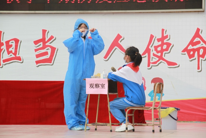 隨后,在總務處的組織下進行了防疫工作應急演練。總務處代表李寶明主任就演練工作進行了小結,并對下階段學校疫情防控工作進行了布置。