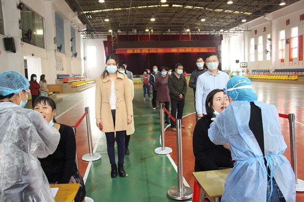 演練分三個情景開展,第一個情景是以廣播講解和現(xiàn)場提問的形式開展發(fā)現(xiàn)有新冠密接者、陽性報告情況時的處置,由馬成海副校長與全體同學進行講解,分別從三個方面進行理解和掌握:當學校教職員工、學生有新冠密接者、陽性報告情況時,配合疾控中心,根據(jù)疾控中心研判,對全校封閉管理,實施對學生、老師采取科學的應(yīng)對措施。1、如果學生未在學校時,學校進行封閉管理,通知學生停止返校,留在家里等待學校的進一步通知;2、如果學生是在校學習期間,學校實施封閉管理,學生戴好口罩,留在班級等待下一步的安排;3、如果學生在上學、放學途中,則根據(jù)具體要求進行安排和布置。接著第二個情景是師生全員檢測核酸演練,演練嚴格按照要求,學生按班級輪流集中檢測,在檢測前打好自己的二維碼,現(xiàn)場進行掃碼登記、測溫、登記、檢測。檢測程序有條不紊,工作按部就班,很好地詮釋了檢測的要求和做法。最后第三個情景是學生不舒服產(chǎn)生的嘔吐物的處理方法和做法的演練,在學生不舒服產(chǎn)生嘔吐物后,學校的校醫(yī)和清潔工人嚴格按照處理嘔吐物的方法,對嘔吐物進行清理、處理和消毒工作,一件一步,認真落實。