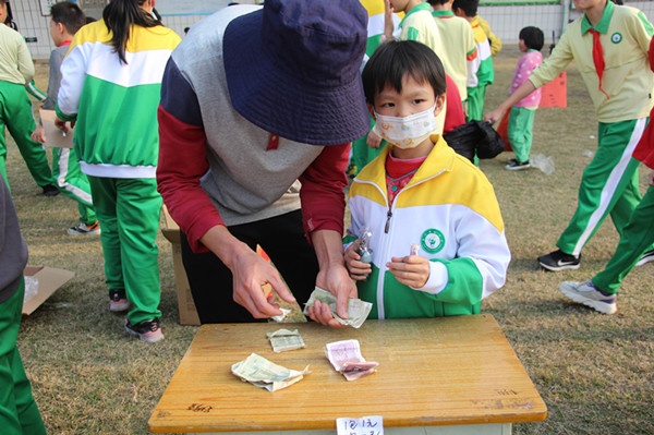“滿載而歸”后幸福的笑容洋溢在每一張可愛孩子的臉上。義賣進行得如火如荼,同學們手上拿著各自的“戰利品”彼此分享與討論,有些同學買到自己喜歡的書籍,坐在操場上認真的閱讀起來,有些同學買到心愛的玩具,不忘在同學面前“炫耀”起來,享受著他們在義賣中的收獲。操場上,愛心傳遞,傳遞中愛滿校園。
