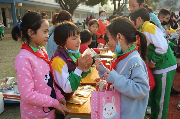 若問阜沙中心小學的孩子們最喜歡什么活動?你聽到的答案一定是“愛心義賣”這四個字。2021年12月24日,阜沙中心小學一年一度的愛心義賣活動在學校操場跑道上再一次拉開了帷幕。