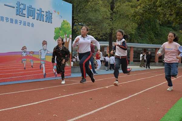 開幕式后,進行的是趣味運動項目,有趣味門球、踏石過河、超級障礙跑。一支支比賽隊伍斗志昂揚,精神抖擻,認真專注打門球,團結(jié)協(xié)作踏石過河,奮力奔跑越障礙。下午2:00開始,進行的是田徑運動項目,有立定跳遠、壘球、實心球、男女50米、團體10×50米和4×100米接力賽。在賽場上,運動員們奮力拼搏,永不言棄,揮灑快樂的汗水,努力完成每一次比賽,為班級及個人贏得一項項獎章和榮譽。運動場外,由教師和學生組成的啦啦隊為運動員們加油鼓勁,吶喊助威;廣播角一則則為同學、班級加油的通訊稿飽含激情與力量,展現(xiàn)了學生良好的精神風貌,校園里一幕幕振奮人心的場景都是運動會上最美的風景線。