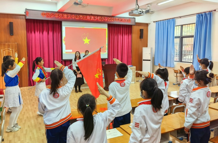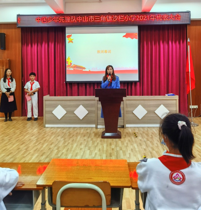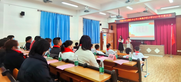 12月20日,中國少年先鋒隊中山市三角鎮沙欄小學2021年代表大會在沙欄小學一樓階梯室召開。中山市三角鎮團委副書記、少先隊總輔導員許嘉天老師,沙欄小學黨支部書記崔煥英校長、副校長黎文輝、家委代表、行政代表、輔導員代表以及少先隊員代表共74人出席了本次會議。