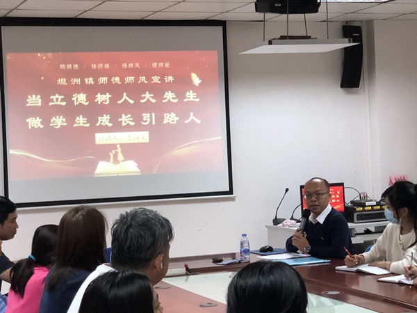 12月15日下午,我校有幸邀請(qǐng)到坦洲鎮(zhèn)宣講團(tuán)成員、十四村小學(xué)麥滿棠主任為我校教師作主題為“當(dāng)立德樹人大先生 做學(xué)生成長引路人”的專題講座。本次講座由王峰主任主持,全體教師聆聽學(xué)習(xí)。
