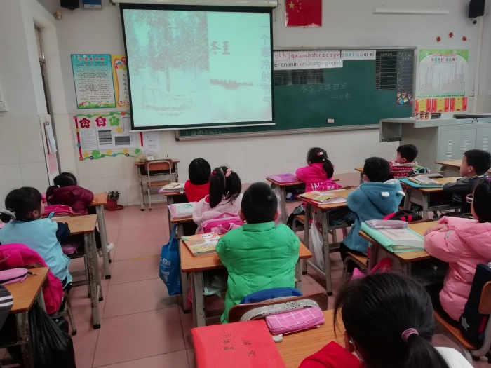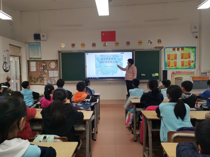 “冬至到,吃水餃,耳朵暖和凍不掉。白天最短夜最長,香香甜甜睡一覺.....”課堂上,各班班主任帶領同學們踏上了探索“冬至”的神秘旅程。為了讓同學們深刻理解節日的內涵,老師們通過小視頻,圖片和文字資料等多種方式讓同學們了解了冬至節的時間、氣候特征、冬至節日的由來與傳說及傳統飲食等有關知識。同學們聽得非常認真,通過班會活動穿越千年,感受傳統文化的滋養和先人們用智慧傳遞的生機與希望,感受因季節變化而帶來的心靈悸動,讓同學們對我國的傳統節日冬至節有了更加清晰和全面的認識。
