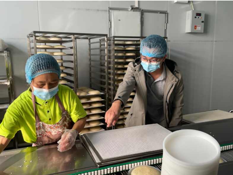 1月7日上午,位于黃圃鎮鴻發西路的某食品有限公司生產車間內飄出陣陣蔥油香氣,兩條糕點面包生產線正有序運轉。公司創始人趙大慧如同往常一樣早早來到車間,認真細致地檢查生產線進度,親自把關產品品質,不時叮囑員工們要守護好食品安全,不可馬虎。