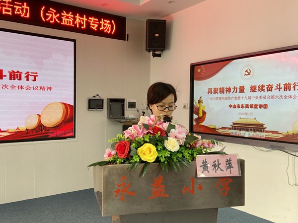 最后,劉秋燕老師號召大家在全黨全社會營造學習宣傳貫徹全會精神的濃厚氛圍,團結一致、不懈奮斗,奮力將東鳳建設成灣區精品城鎮,為加快建設“美麗中山、投資熱土”貢獻東鳳力量。