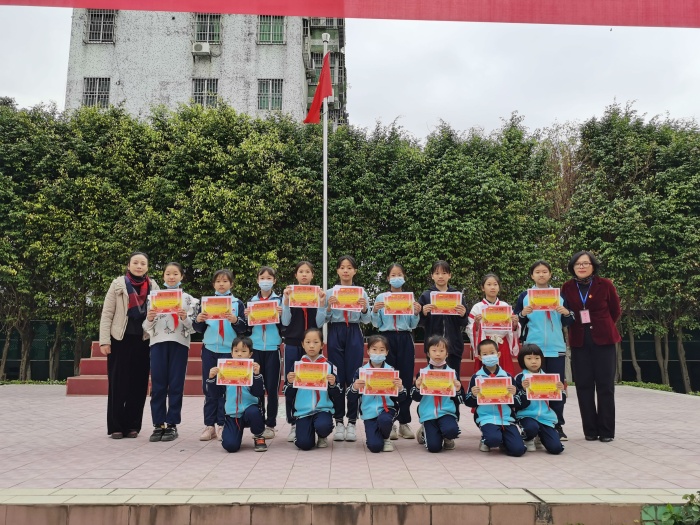 隨后,語文科組長蘇影霞老師公布了各班吟誦比賽結果以及優秀指導老師名單,藝術科組長梁啟聰老師小結了現場書法、剪紙等比賽情況,并由潘虹校長和陳麗娥副校長為優秀指導教師,獲獎班級、學生頒獎。