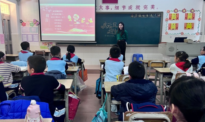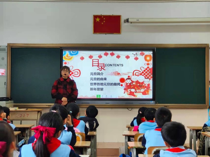 本次活動在各班班主任對學生衷心的新年祝福中開始,班主任寄語學生們在新的一年里身體健康,學習進步。簡單的語言,卻承載著老師最真心的祝福,同學們也紛紛用熱烈的掌聲表達對老師的感謝。緊接著,老師給學生講解了元旦相關的知識,如元旦的由來、世界各地的元旦習俗等等。