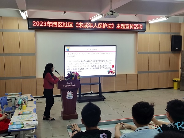 為進(jìn)一步加強(qiáng)未成年人保護(hù)工作,提高學(xué)生自我安全保護(hù)意識(shí)和能力,促進(jìn)未成年人健康成長(zhǎng),3月29日下午,小欖鎮(zhèn)西區(qū)社區(qū)走進(jìn)小欖鎮(zhèn)西區(qū)小學(xué)為六年級(jí)學(xué)生開展《未成年人保護(hù)法》主題宣講活動(dòng),全面貫徹落實(shí)未成年人保護(hù)的相關(guān)法律法規(guī)。