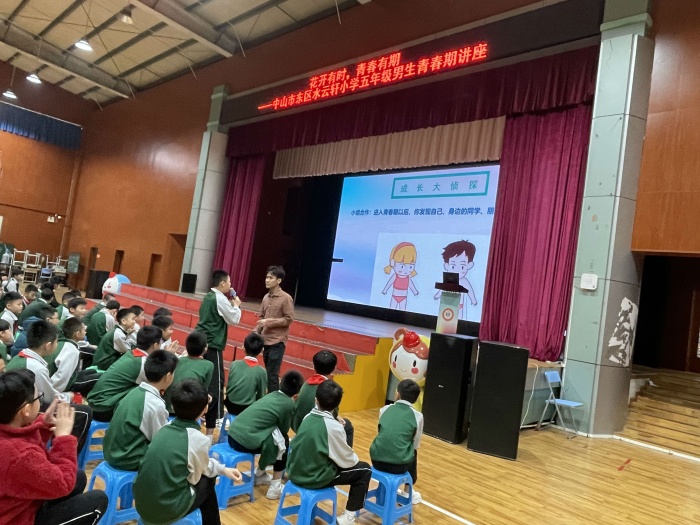 娉娉裊裊十三余,豆蔻梢頭二月初。青春期是青少年身心快速發展的重要階段,是學生成長的關鍵期。為引導學生正確對待青春期身體和心理的變化,減少青春期所引起的種種困惑對學生的學習、生活造成不良影響,幫助他們更健康、更快樂地度過青春期,2023年3月27日上午,中山市東區水云軒小學分別為五年級的男生和女生帶來一場有趣又有用的青春期健康知識講座。