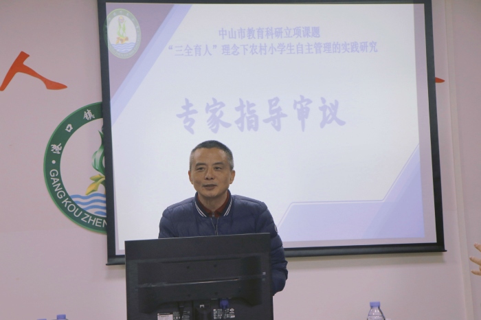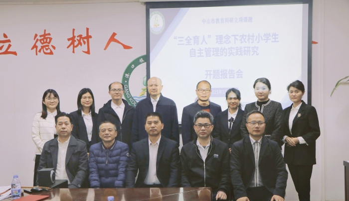 2023年3月29日,中山市港口鎮下南小學在會議室開展中山市教育科研立項課題“三全育人”理念下農村小學生自主管理的實踐研究開題報告會。中山市德育研究中心潘志堅主任、中山市德育研究中心賴立章副主任、港口鎮教育和體育事務中心張育文主任、港口鎮教育和體育事務中心德育專干吳菊香老師蒞臨指導。課題組全體成員、學校全體行政及班主任參加此次開題報告會。