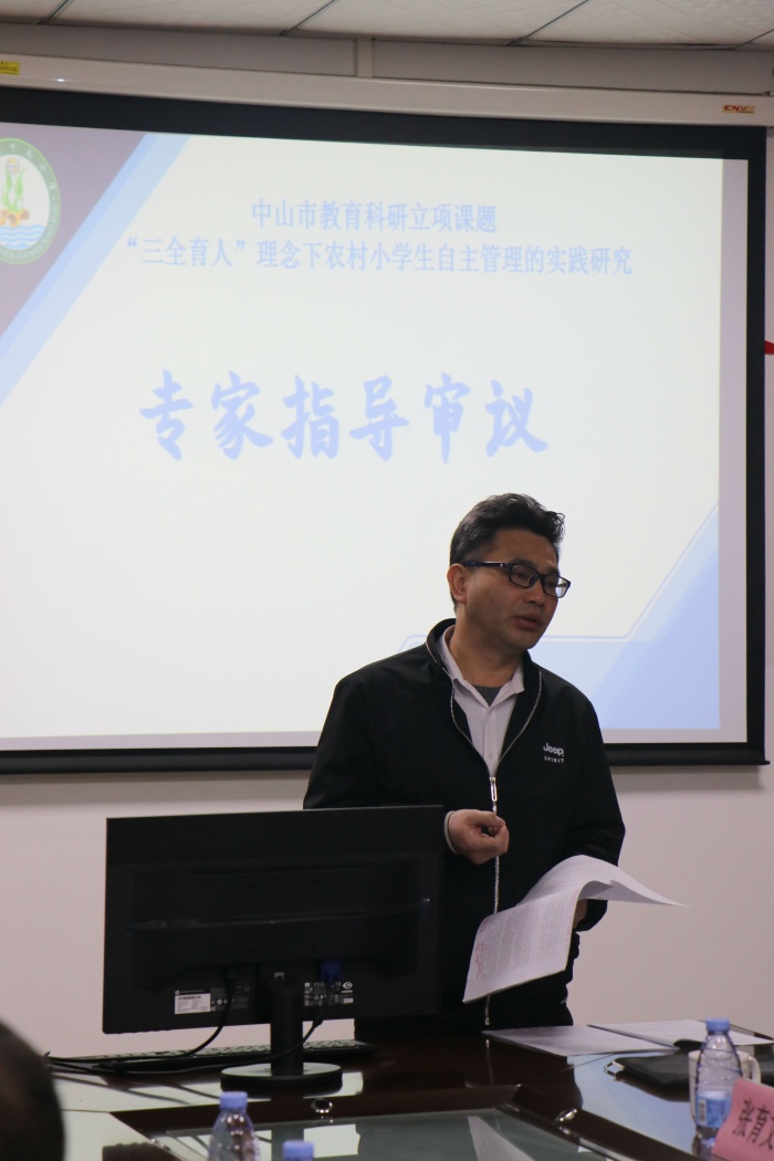 接下來是有關專家、領導作課題研究可行性論證,對課題研究進行指導。其中賴立章副主任對課題的選題做了充分的肯定,并從研究規劃中提出三點建議:重培訓、定模式、尋總結。結合課題賴立章主任指出要結合“三全育人”對“全員”通過“走出去、引進來”等多種方式開展定期培訓活動,可結合“三全育人”理念及本校情況大膽嘗試“五自管理模式”“三級管理模式”,探索出符合本校的自主管理模式。另外還要定期開展課題研討會,學習理論知識,結合課題實踐研究及時總結經驗,調整研究方案。潘志堅主任則指出我們要善于從前人的肩膀上總結經驗,再結合時代特點、本校特點開展課題研究。潘志堅主任指出結合“三全育人”的理念可以從學生、教師、家長及學校層面制定相應的研究目標及研究內容。德育課題的效果呈現應多元化,學會量化德育成果,化虛為實。最后,張育文主任說道:“港口鎮下南小學呈現出濃厚的科研氛圍,這是一個好的開頭”。同時他主要從課題表述的方面進行指導。張育文主任說道:“科研是一項嚴謹的工作,因而在文字表達時應注意用詞的準確性。”另外,張育文主任也寄望下南小學能夠通過課題的引領,提升辦學質量。