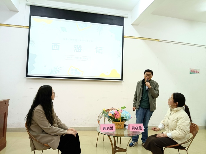 在整本書閱讀的感受和教學策略分享活動中,港口中學黃勇苗老師、大南中學李春鴿老師、華辰實驗中學方玉老師就《駱駝祥子》的教學思路進行了深入的交流與探討。三位老師在任務閱讀——感悟分享——敘事表達的教學思路上達成了共識;此外,港口中學符曉霞老師、大南中學周陽名老師、華辰實驗中學葛利嬌就《西游記》的深刻意蘊和教學啟發展開討論,特別是在情境的創設和情節的梳理上,三位老師都結合新課程標準做出自己的理解分享。