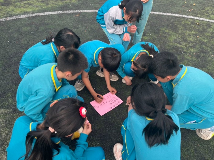 陽光正暖,不負時光;成群結(jié)隊,快樂加倍。短暫的時光里,同學(xué)們相互配合、團結(jié)一心,用智慧和信心完成挑戰(zhàn),用激情和活力展現(xiàn)青春風(fēng)采。學(xué)生在歡笑聲中放松了身心,也凝聚了班級的向心力,增強了集體榮譽感。愿少年們青春飛揚,追逐夢想;團結(jié)奮進,展翅飛翔,爭做新時代的陽光好少年!