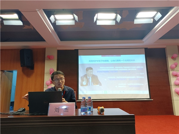 在我國的第6個“近視防控宣傳教育月”里,為共同呵護(hù)好孩子的眼睛,讓其擁有一個光明的未來。3月23日,責(zé)任督學(xué)、中山市學(xué)校健康教育百師宣講團副團長劉杰校長專程到三鄉(xiāng)鎮(zhèn)白石環(huán)小學(xué)作了《千方百計抓好學(xué)生近視防控工作》的專題講座。全校教職工參加了培訓(xùn)。