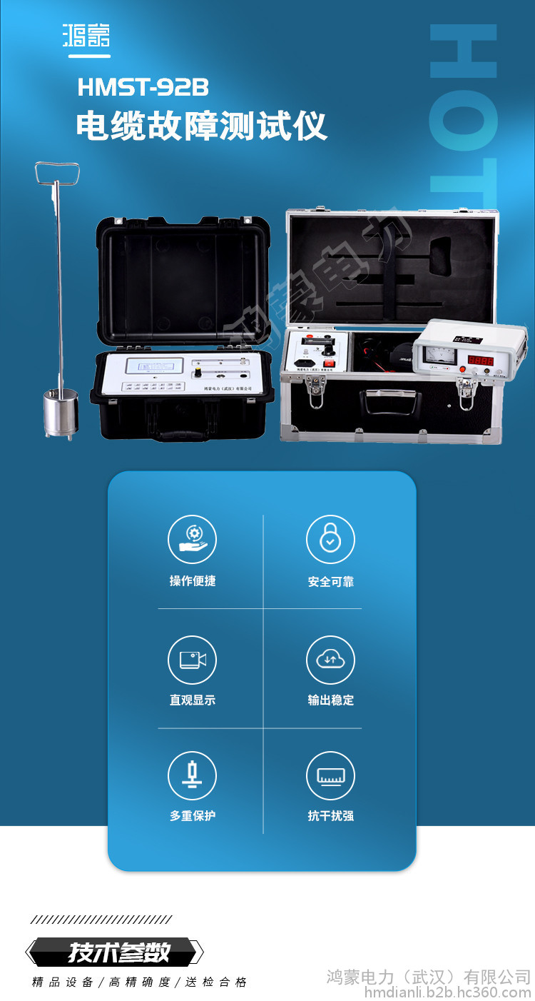 二、產品特征 1、電纜故障測試儀(閃測儀) (1)使用范圍廣:用于測量各種不同截面、不同介質的各種電力電纜、高頻同軸電纜,市話電纜及兩根以上均勻鋪設的地埋電線等電纜高低阻、短路、開路、斷線以及高阻泄漏和高阻閃絡性故障。亦可用于測量電纜長度以及測量電波在電纜中的傳播速度。 (2)攜帶方便:主機采用鋰電池供電、輕巧、便于攜帶、方便野外測試和礦井電纜測試。 (3)人機界面友好:采用了大屏幕 320×240 點陣漢字圖形界面,高亮度圖形清晰美觀,操作簡單,抗干擾性強。 (4)安全可靠:采用新型電流取樣器,一種全新的取樣方法,具有接線簡單,波形直觀容易分析,與高壓完全隔離,對主機、操作人員安全的特點。 (5)高品質:關鍵部件全部采用進口元件,保證測試結果準確度。 (6)外觀精美:采用堅固且耐磨性強的材料,使儀器的整體質感和使用壽命更長。 2、路徑儀 (1)靜態漂移低:核心元器件采用進口元件,性能可靠。 (2)輸出功率大:內部采用精密大功率管,保證輸出信號功率夠大,不易衰減。 (3)保護功能完善:儀器內部保護電路齊全,具有過壓、過流等保護功能。