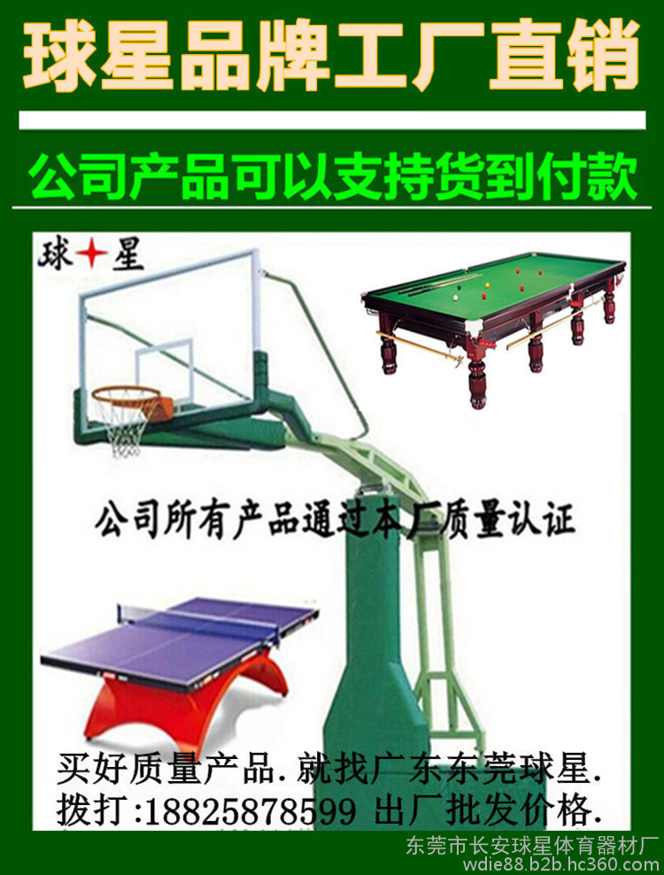 東莞市長安球星體育器材廠集三十多年管理、制造經驗,專業制造桌球臺、乒乓球臺、籃球架、桌上足球.公園.小區健身器材等./等體育用品。秉著質量至上,信譽好的原則,所做產品深受客戶好評。桌球臺、乒乓球臺、籃球架.桌上足球.公園小區健身器材五個系列產品遠銷歐洲,南、北美洲,澳大利亞及部分阿拉伯**。