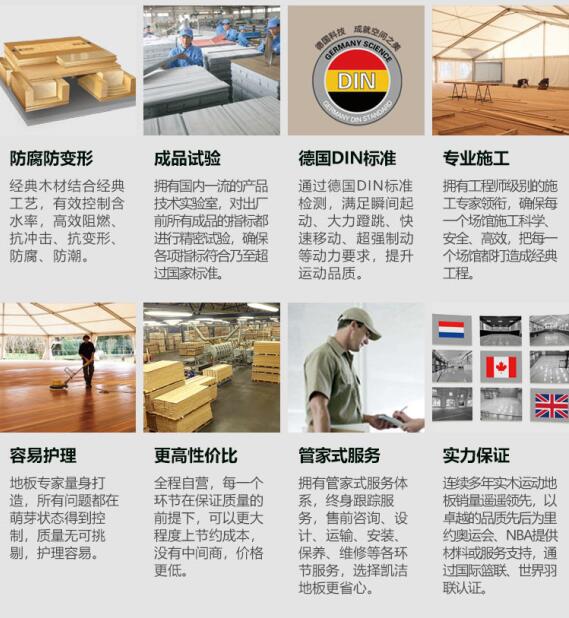 綜合體育運動木地板采用體育專用的楓木,楓樺木,柞木材料,壽命更長。