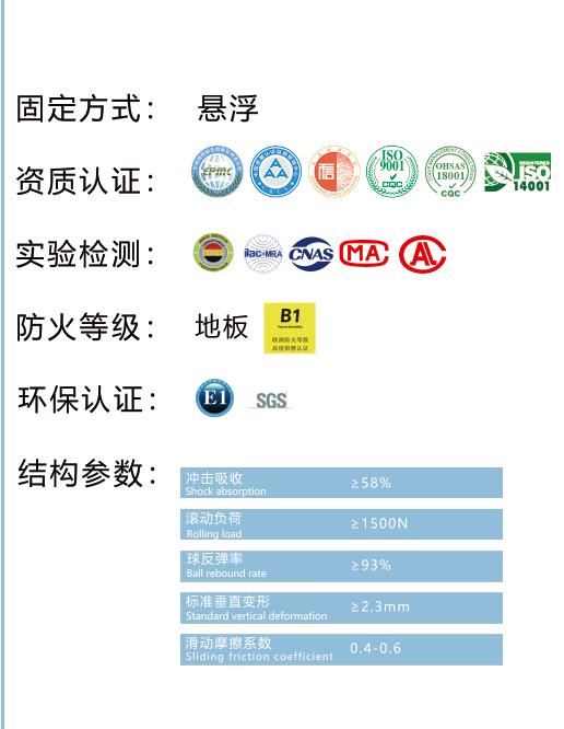 面層:俗稱地板層,主要作用為承載重力,對防滑、耐磨性要求極高(圖例中為實木多層楓木地板。支持定制) 定制高壓承載板層:俗稱毛地板,主要作用為承載重力和壓力,需要較好的抗沖擊和震動吸收能力(圖例中為環保E1級定向防水歐松板。支持定制)