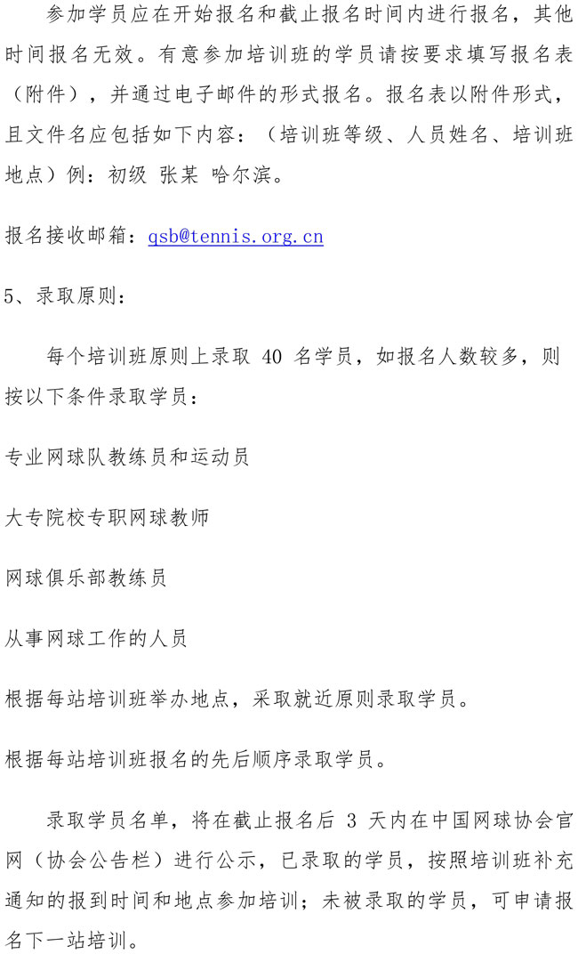 中國網球協會2019年初級教練員培訓班(哈爾濱站)補充通知