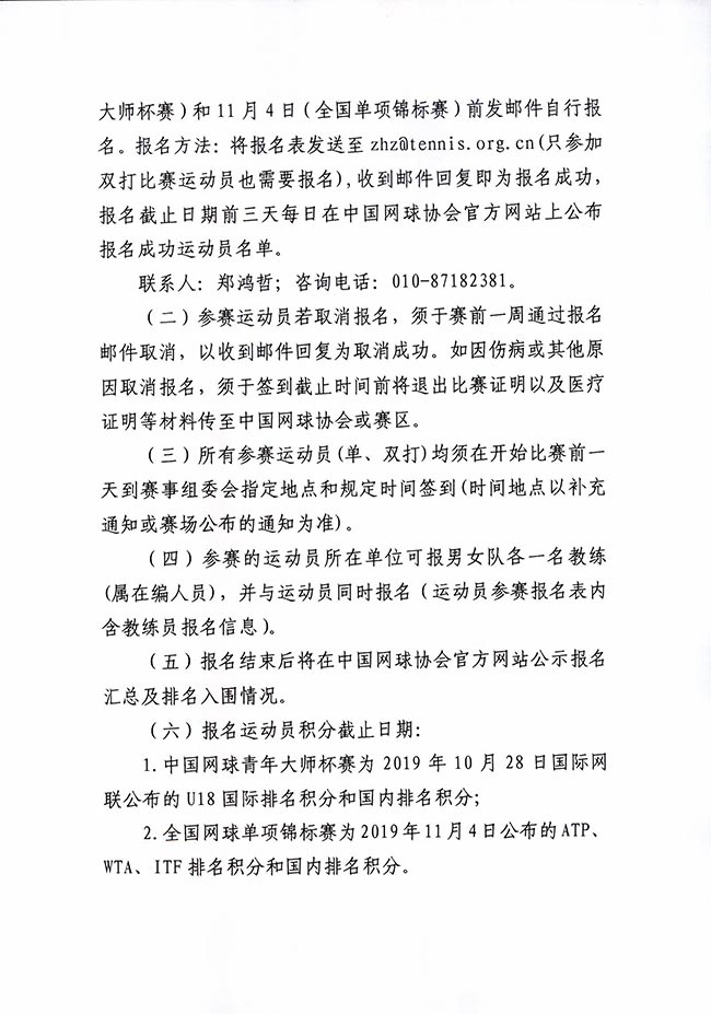 1.2019年中國網球青年大師杯(中國網球未來之星大獎賽)日程安排