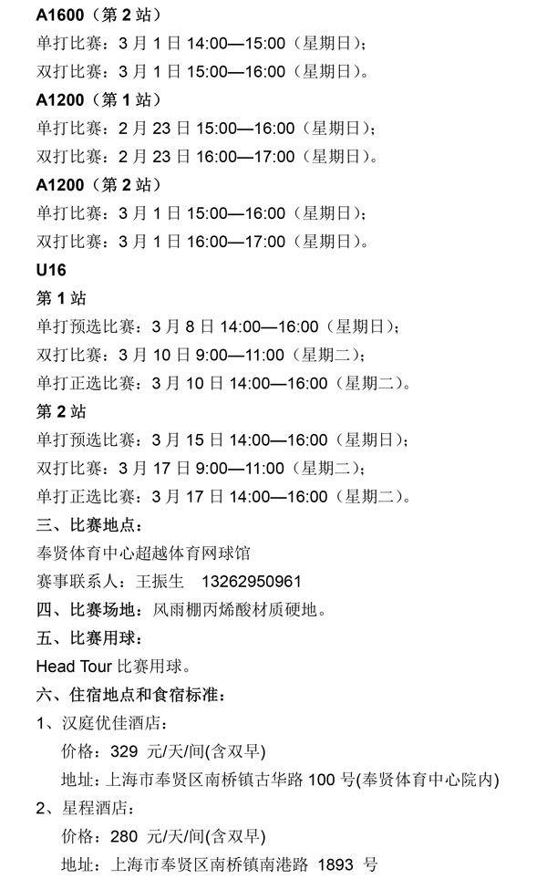 2020年全國青少年網球積分排名系列賽(奉賢站)補充通知