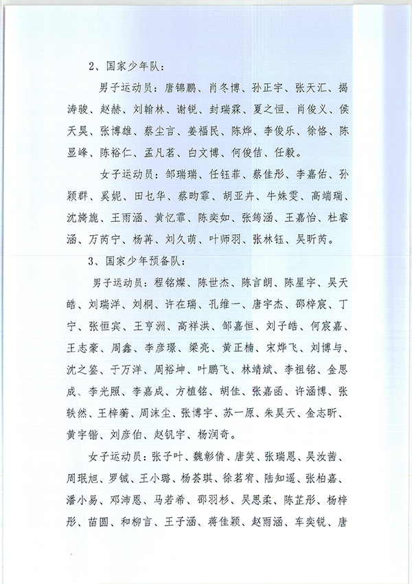 關于公布2020年國家青少年網球隊相關人員組成名單的通知