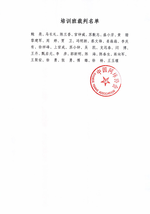 關于舉辦2019年中國網球協會裁判長培訓班補充通知(上海)