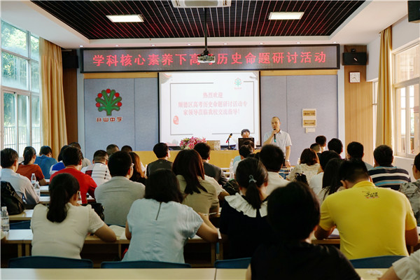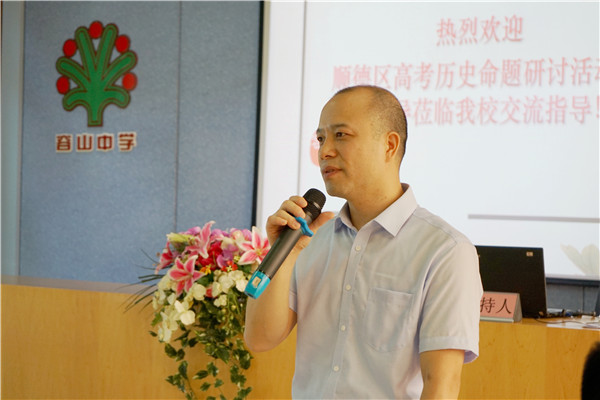 為進一步落實歷史學科核心素養,加強2019年高考試題的研究,發揮高考試題對新一屆高三歷史備考的指導作用,提升教師專業水平和培養命題團隊,7月2日上午,順德區教育發展中心在容山中學舉辦了“學科核心素養下高考歷史命題”研討活動,邀請了高考全國卷命題專家吳偉教授到校進行命題技能培訓講座。全區高中歷史學科組長,高二歷史教師,高三歷史備課組長,高中歷史命題研究小組成員參加此次活動。會議由順德區教育發展中心教研室余逸主任主持。
