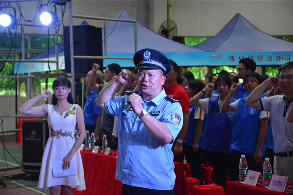 陳村鎮(zhèn)黨委委員、陳村派出所所長劉劍飛,陳村鎮(zhèn)綜治辦常務副主任龔永健,陳村鎮(zhèn)禁毒協(xié)會會長單位、廣東永通起重機械股份有限公司董事長葉宏洪,陳村職校副校長司徒葵東,陳村鎮(zhèn)各職能部門代表以及陳村職校智能制造學部全體學生等1000余人參加了本次活動。