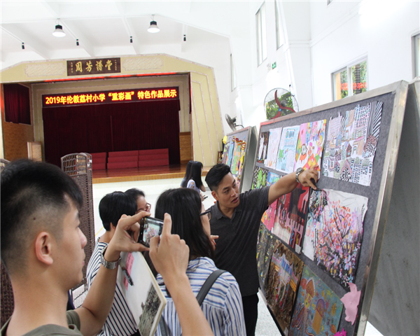 活動(dòng)在順德區(qū)倫教街道小學(xué)美術(shù)中心教研組組長鄺寶均老師主持下,首先參觀了“荔村小學(xué)美術(shù)特色作業(yè)展示”,到會(huì)的老師們在學(xué)生的引領(lǐng)和講解下在禮堂進(jìn)行觀展。此次展出的美術(shù)特色作業(yè)內(nèi)容豐富多彩,形式多種多樣。有裝飾味道強(qiáng)的重彩畫,有別具匠心的拼貼畫,有活靈活現(xiàn)的手工紙花,有書寫端正的手抄報(bào),還有創(chuàng)意無限的手工立體作品和橡皮泥作品等等,內(nèi)容豐富的作品彰顯了老師們設(shè)計(jì)的豐富與巧妙,更凸顯了學(xué)生們的認(rèn)真努力和奇思妙想。在展覽上,荔村小學(xué)的學(xué)生們清晰大膽地介紹自己的作品和回答老師們的問題,同時(shí)認(rèn)真地傾聽老師們的建議。老師們一邊認(rèn)真地觀看,一邊時(shí)不時(shí)拿出手機(jī)拍照記錄,作為自己今后輔導(dǎo)的參考。