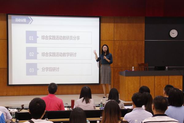 9月11日上午,順德區2019學年第一學期綜合實踐活動大學科教研工作會議在廣東順德德勝學校順利召開。此次會議由區綜合實踐活動教研員周曉曉老師主持,各鎮(街道)、區屬初中、區屬高中綜合實踐活動負責人和教師代表等50余人參加會議。
