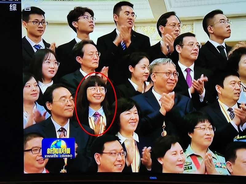 新聞聯(lián)播播出的畫面,紅圈中為臧敏老師