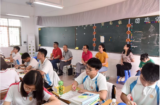 接著余逸主任充分肯定了僑中近幾年高考等方面取得的較大進步,稱贊以吳劍平校長為首的學校領導班子堅持“四個”備考,勇于創新,大膽啟用新人,狠抓落實,取得了很不錯的成績。同時希望華僑中學要進一步加強課堂革命,把常規檢查量表化、績效化;并根據新高考要求,積極落實新課標和核心素養,使備考更具針對性,為順德教育高質量發展作出更大的貢獻。