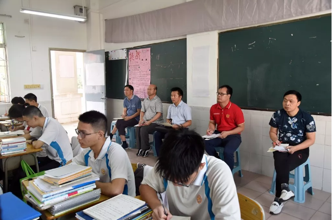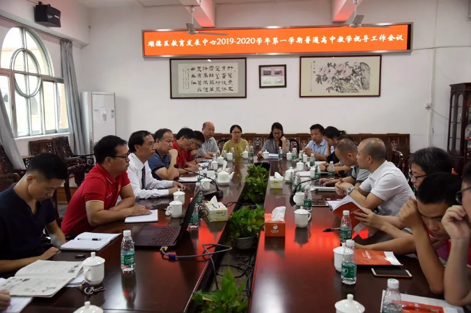 2019年10月24日下午,順德區教育發展中心教研室主任、歷史學科教研員余逸帶領化學學科教研員潘紅老師、地理學科教研員吳俊和老師、數學學科教研員王常斌老師、生物學科教研員唐創強老師、政治學科教研員薛國雄老師、英語學科教研員許莎莎老師、語文學科教研員謝植宣老師一行8人,對順德華僑中學教學和高三備考工作進行了全方位的視導檢查。順德華僑中學吳劍平校長、黨總支羅來綱副書記、教學科研處潘錦江主任及學校相關學科科長和備課組長等全程陪同。