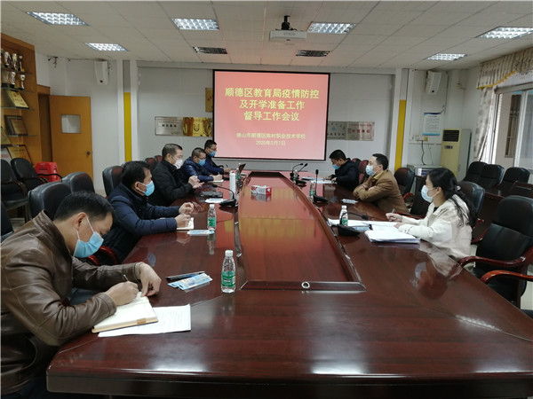 2020年2月7日下午,順德區教育局副局長羅勁柏、高教職教科科長楊少琴、專干鄭志江一行3人蒞臨陳村職校,指導學校疫情防控及開學準備工作,學校黨總支5位委員參加了會議。