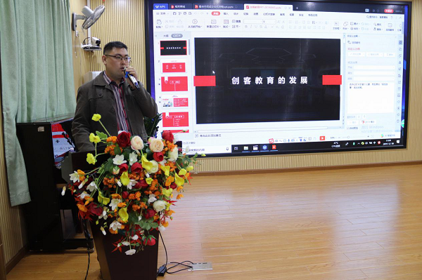 林慶河副校長介紹順德區(qū)倫教小學(xué)創(chuàng)客教育開展情況以及星創(chuàng)空間未來建設(shè)設(shè)想