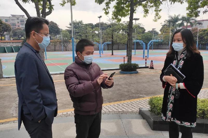 2月19日上午,順德區區委副書記、區政法委書記王勇、區府辦常務副主任杜友華、區教育局副局長冼彌冬等領導到容山中學檢查疫情防控工作。容山中學值班行政彭文歡副校長代表學校匯報了相關工作