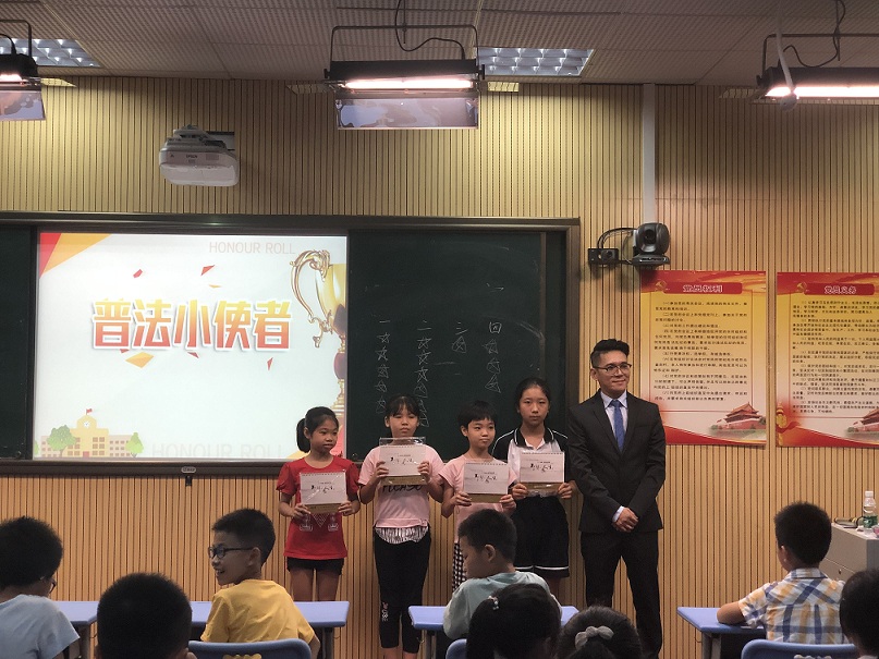 2019年7月11日下午,憲法在我心中――“憲法普法大課堂” 走進我們學校,由廣東聚理律師事務所的何忠良律師 和吳漫律師給孩子們授課。 “憲法教育大課堂”圍繞“尊崇憲法、學習憲法、遵守憲法、維護憲法、運用憲法”,組織開展面向孩子們的憲法學習宣傳教育活動。