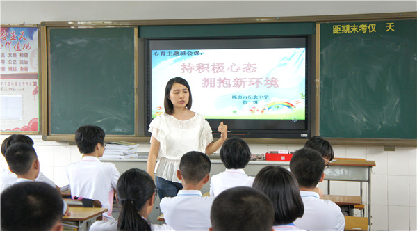 初一新生在上心育主題班會課