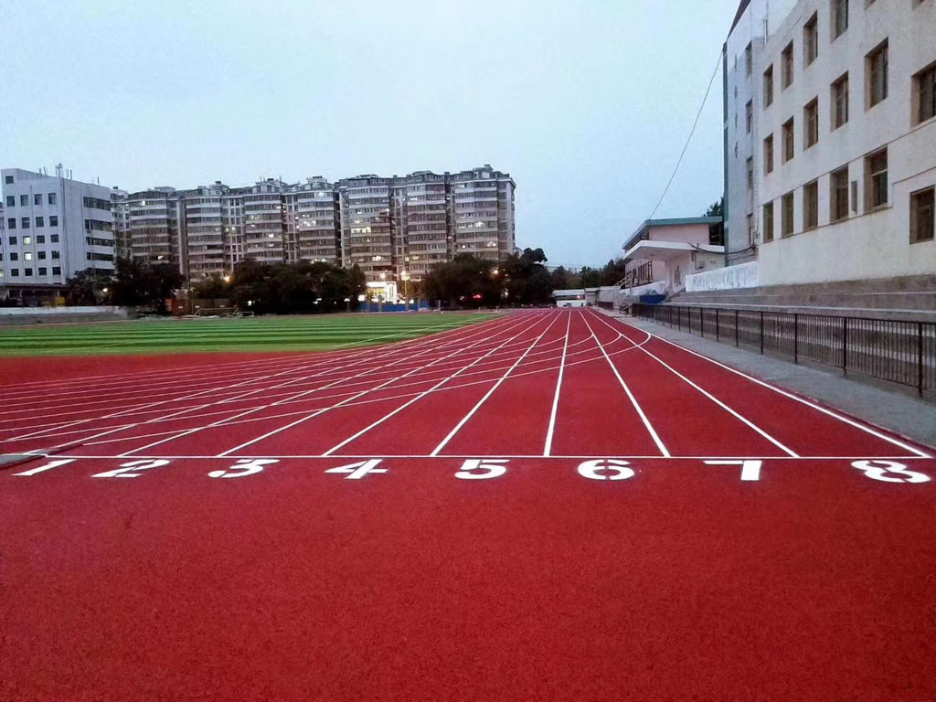 塑膠跑道又稱全天候田徑運動跑道,它由聚氨酯預聚體、混合聚醚、廢輪胎橡膠、EPDM橡膠粒或PU顆粒、顏料、助劑、填料組成。塑膠跑道具有平整度好、抗壓強度高、硬度彈性適當、物理性能穩定的特性,有利于運動員速度和技術的發揮,有效地提高運動成績,降低摔傷率。塑膠跑道是由聚氨酯橡膠等材料組成的,具有一定的彈性和色彩,具有一定的抗紫外線能力和耐老化力是國際上公認的全天候室外運動場地坪材料。 塑膠跑道材料產品特點: