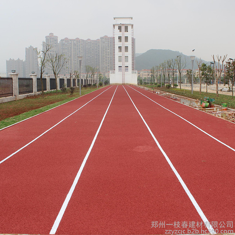 4、混合型塑膠跑道是PU與黑色橡膠顆粒按一定比例混合而成跑道系統(tǒng)。材料運(yùn)到現(xiàn)場按一定比例混合,加入催化劑攪拌均勻,攤鋪,常溫硫化成型,該面層是現(xiàn)時(shí)有標(biāo)準(zhǔn)的塑膠面層材料,主要用于專業(yè)比賽用場地等。