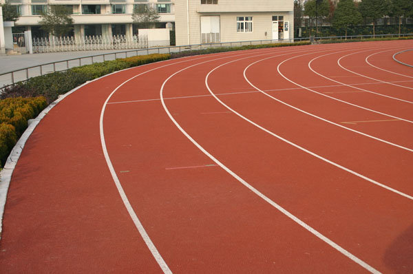將表層雙組份特種面漿按1:2要求配制好, 用專用設(shè)備鋪裝面層,在該層全聚酯膠漿完全固化前即可形成其表面防滑、耐磨紋理,其防滑效果完全可達(dá)到國(guó)際田聯(lián)的標(biāo)準(zhǔn)。
