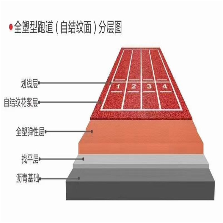 自結紋"工藝是特種聚氨酯純膠漿,通過化學反應形成的聚氨脂共聚物,在表結狀態下自動生成凹凸均勻的紋理,來達到一定的摩察系數,滿足防濕滑等指標。自結紋無顆粒塑膠跑道在全國為何會如此受廣大工程商、使用者的喜愛,歸于這個新型工藝產品的表面更耐磨、更美觀、不掉粒等優越性。