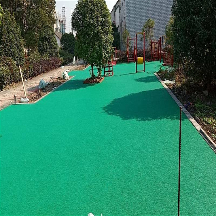 將甲:乙比例為1:4和EPDM顆粒(2-3mm)混合配比料運至推鋪現場下料后即開始攤鋪