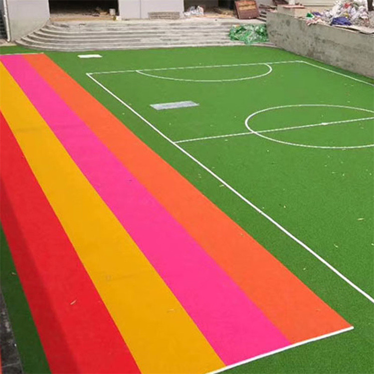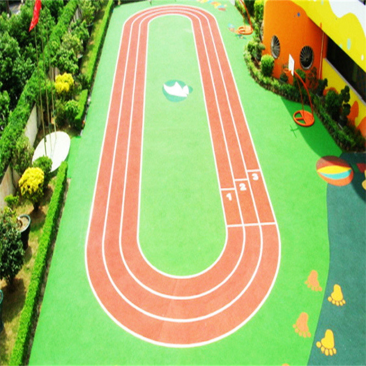面層鋪裝:自結紋無顆粒塑膠跑道,施工過程采用了先進的施工工藝,施工順序為:一步:基礎的檢測、修整;第二步:鋪設底膠;第三步:鋪設清漿層;第四步:鋪設花漿層;第五步:噴涂場地規則線。平整度保證達到95%以上,完全符合和國際田聯標準。