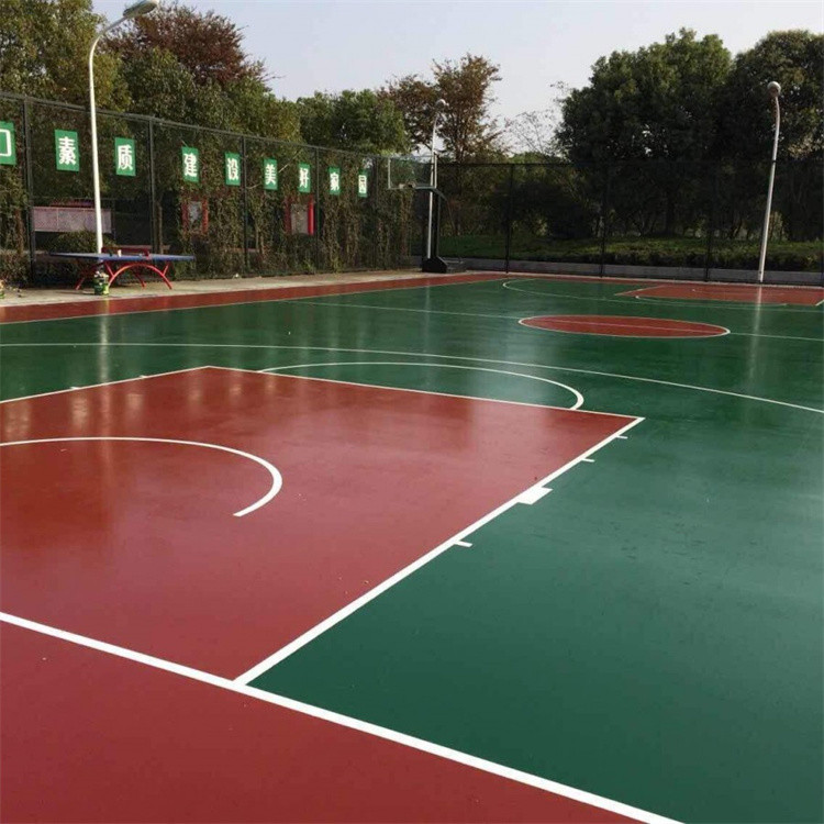 6. 平整度校檢找平:為保證整個場地鋪裝平整,厚度均勻,施工前用自來水對整個場地進行澆水,澆水要全面徹底,且要采用慢注漫流、嚴禁強沖,待積水處理干后,凹陷積水之處用筆做好記號,用混合底料補平,直到將整個場地凹陷處補平,沒有積水現象為止。