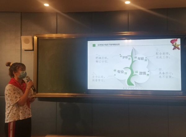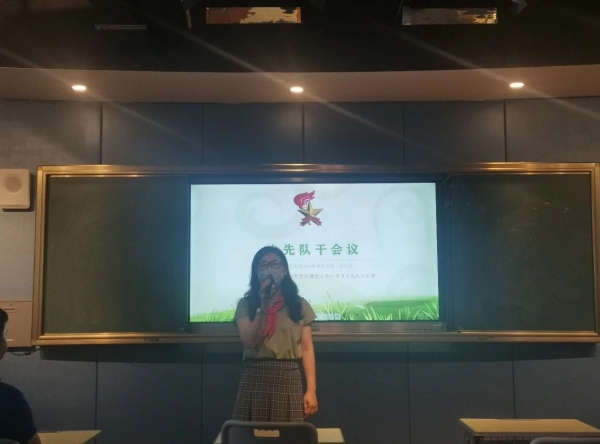 會議開始,與會師生齊唱《中國少年先鋒隊隊歌》,少先隊員行隊禮。大隊長馮紫雯對上學期少先隊干部工作做總結發言。