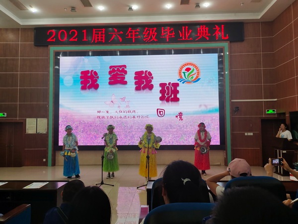 同學之情深似海。在畢業生家長代表為學校敬獻紀念品之后,大屏幕開始播放充滿回憶的視頻,同學們欣賞著自己從一年級的幼稚到中年級的懂事,再到高年級的成熟,六年的學習生活如畫卷展開并深深地鐫刻在每一位師生的腦海中。同學們用一個個自編自導的精彩節目,表達了對母校、對老師的感謝和深深的眷戀。在活動中,學生們走上舞臺,展示自己的才能:有活力四射的舞蹈串燒,有再現校園生活的情景劇表演,有詼諧有趣的三句半,有滿含深情的歌曲演唱……豐富多彩的節目充分展示了學校的教育成果,也凝聚了同學們對學校深深的感謝之情!